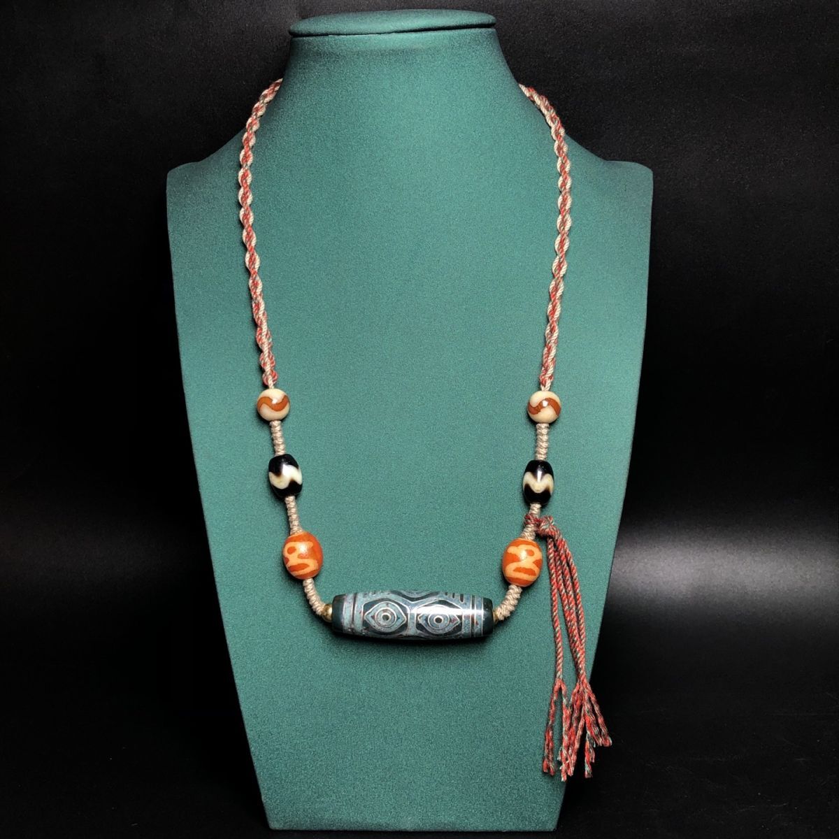- 永し 清時代 天然瑪瑙 藏傳 嵌銀絲 龍眼 六眼天珠 項鏈 極細工 置物擺件 古美術品 時代物 古董品 収集 旧家蔵出 中国唐物 A265