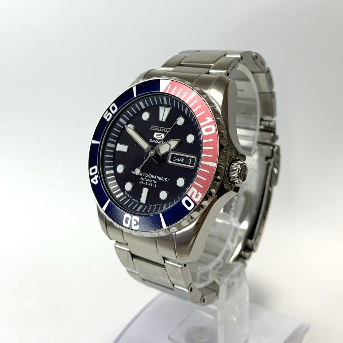 - 【稼働品】SEIKO5 セイコーファイブ SPORTS 7S36-03C0 メンズ 腕時計 自動巻き デイデイト 23石 裏スケ w469
