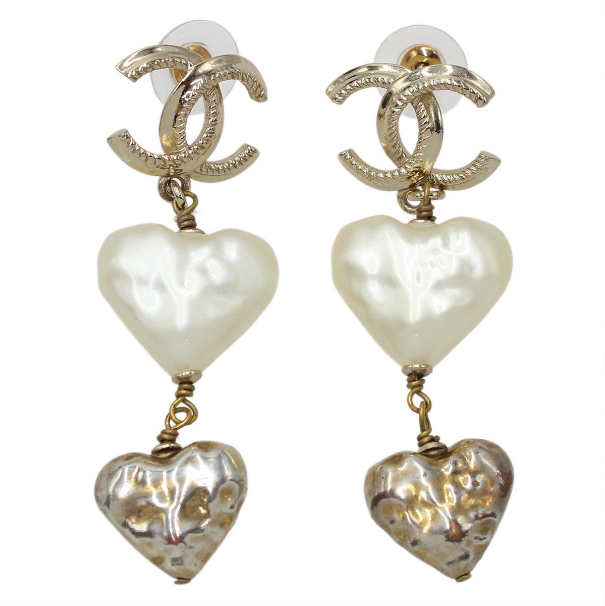 ★Q2683 シャネル ココマーク×ハート フェイクパール スイング ピアス ゴールドカラー B22C CHANEL レディース★