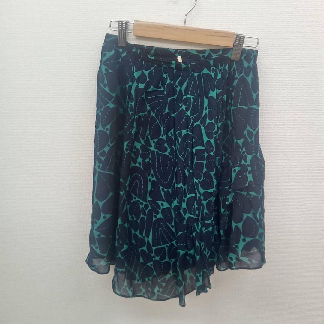 - ひざ丈フレアスカート(38)ミディ丈*総柄*透け感*裏地*フェミニン*グリーン