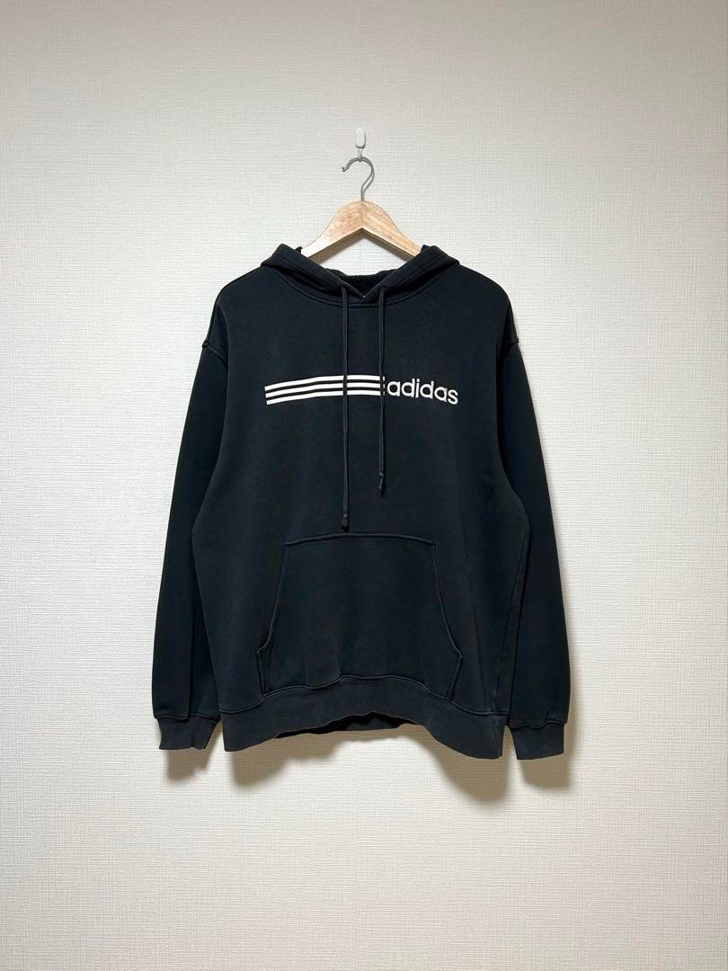 - 00s adidas パーカー プルオーバー 裏起毛 刺繍ロゴ スリーライン