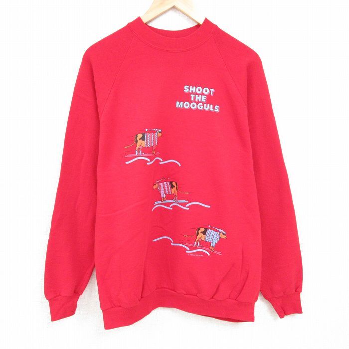 - XL/古着 ジャージーズ 長袖 スウェット メンズ 80s ウシ ラグラン クルーネック 赤 レッド 24oct22 中古 スエット トレーナ