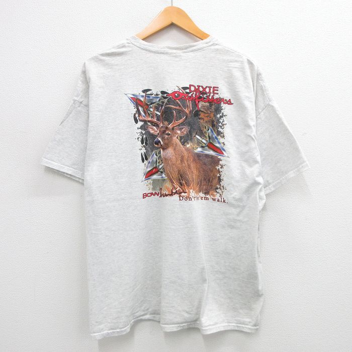- XL/古着 半袖 ビンテージ Tシャツ メンズ 00s シカ 大きいサイズ クルーネック 薄グレー 霜降り 24aug07 中古