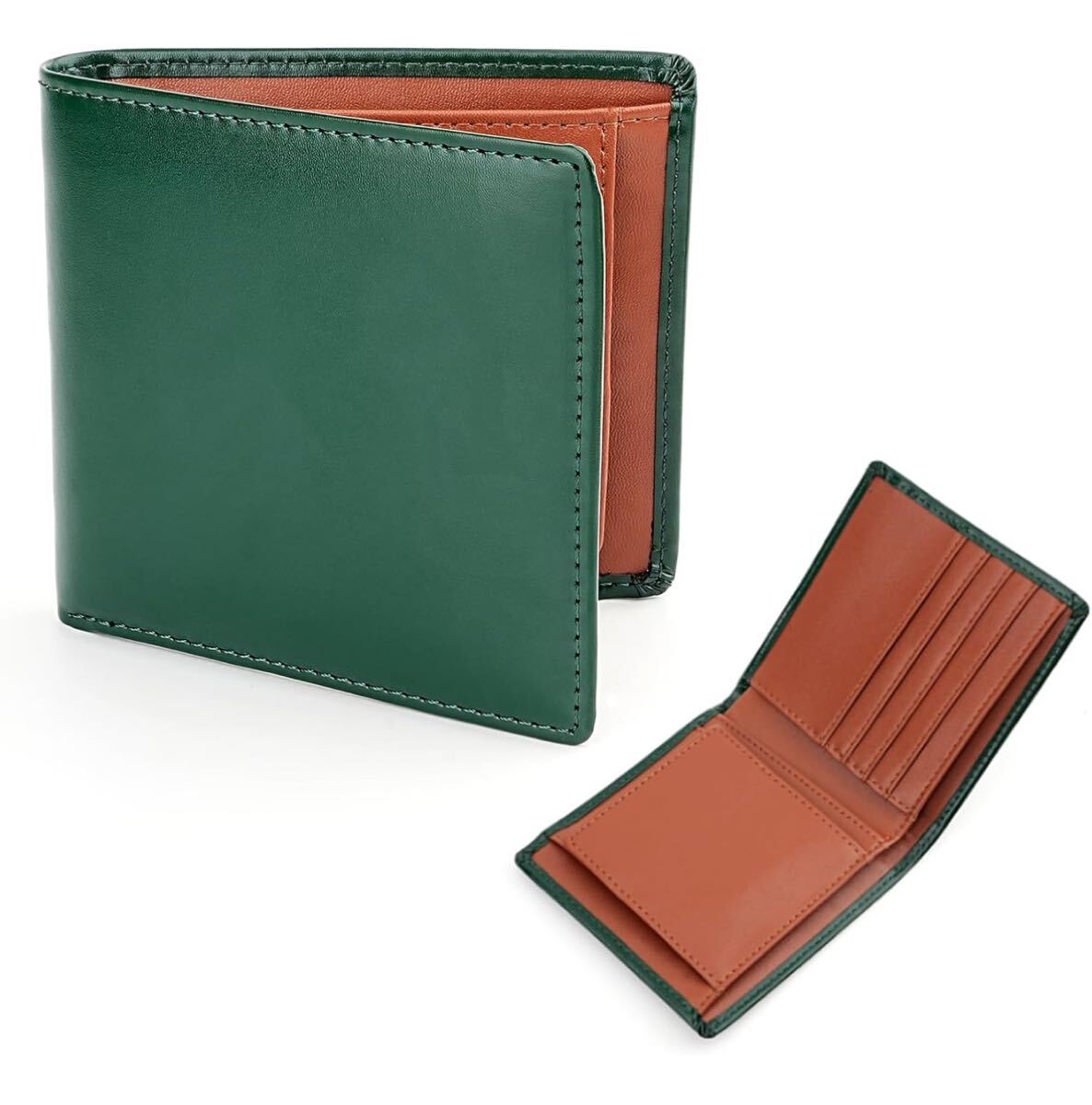 - 二つ折り財布 メンズ 2つ折り 薄型 ボックス型の小銭入れ 大容量 オイルレザー 折り財布 折りたたみ グリーン・ブラウン