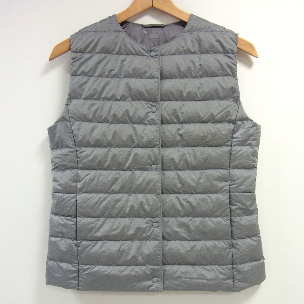 > 美品 UNIQLO ユニクロ ウルトラライトダウン コンパクトベスト インナーダウン レディース 襟調節ボタン グレー