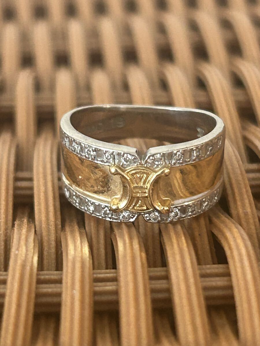- 希少?セリーヌ トリオンフ ゴールドプラチナダイヤリング 750 pt900 0.19ct