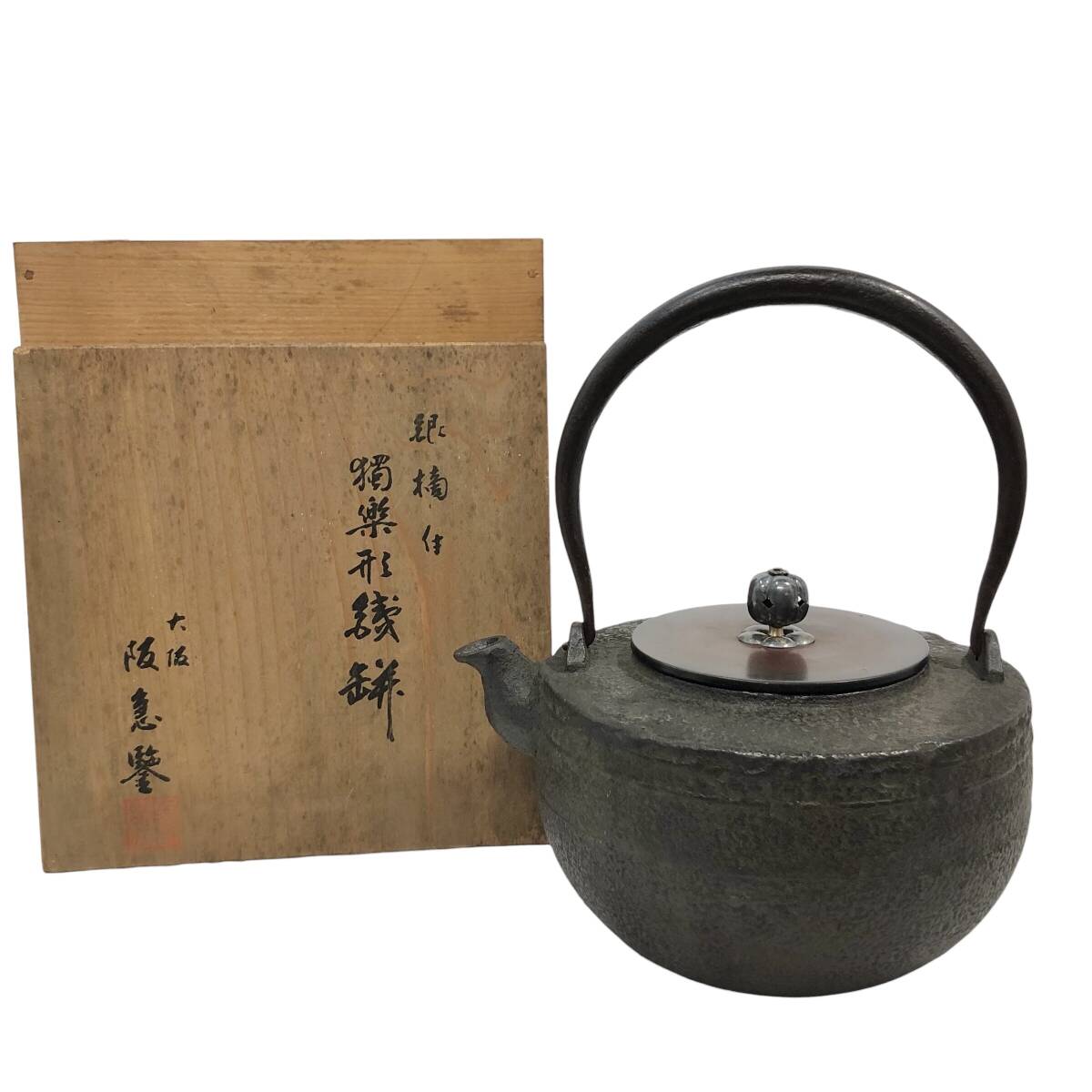 > *大阪阪急 銀摘付 独楽形 鉄瓶 茶道具 煎茶道具 湯沸 松下電器産業 創業35周年記念 骨董 コレクション 共箱
