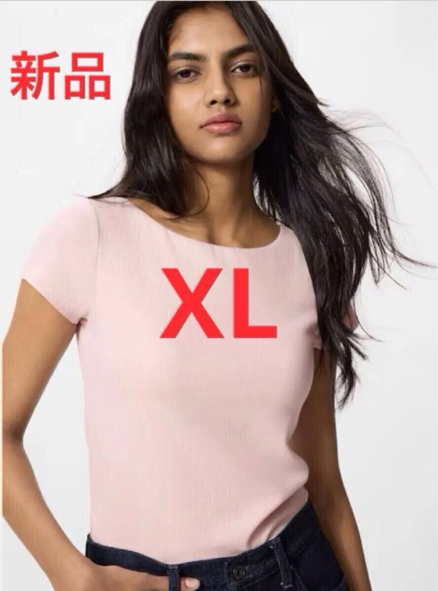> 新品 ユニクロ エアリズムコットンローバックブラTシャツ XLサイズ ピンク