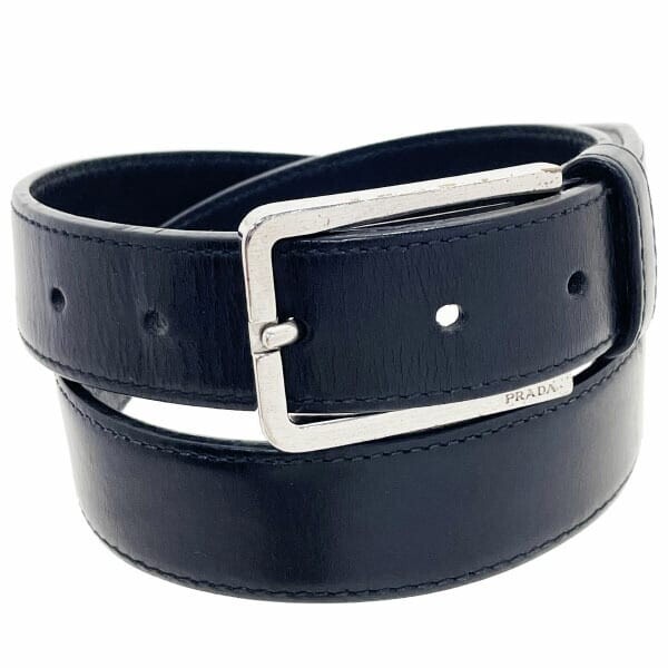 > 15792 プラダ ベルト レザー 革 ブラック 黒 シルバー金具バックル 2C 2510 サイズ75cm PRADA ロゴ