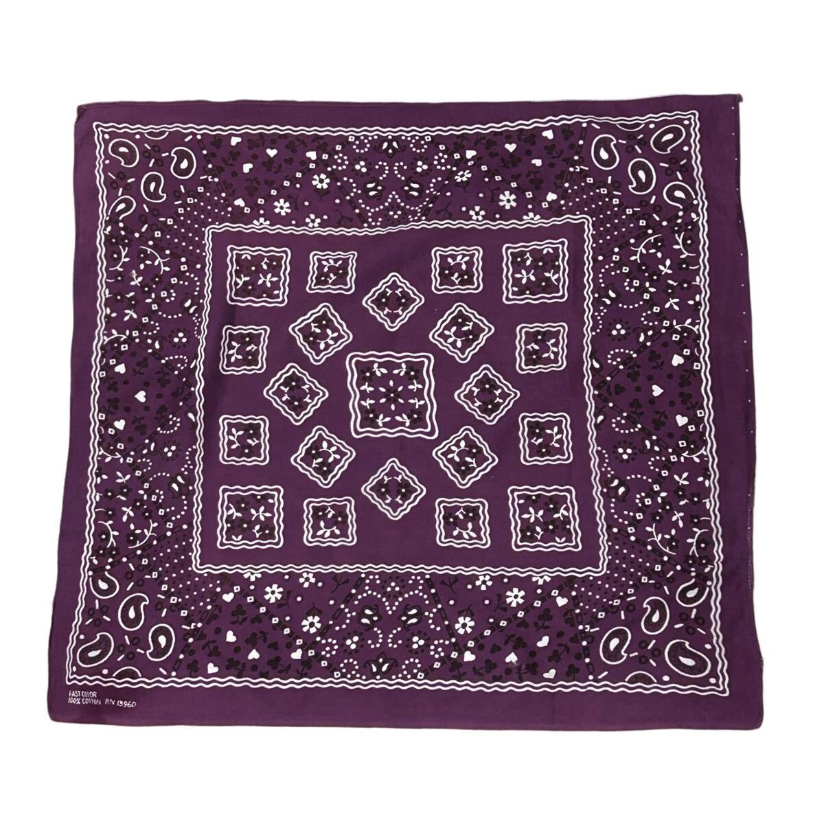 - 美品【60s ビンテージ クッキー柄 バンダナ レアカラー パープル FAST COLOR RN13960】 USA アメリカ