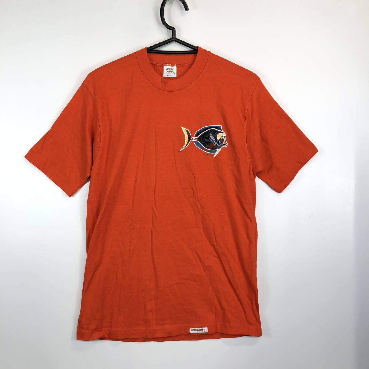 - 90s USA製 クレイジーシャツ CRAZY SHIRTS 半袖Tシャツ オレンジ シングルステッチ ハワイ Sサイズ