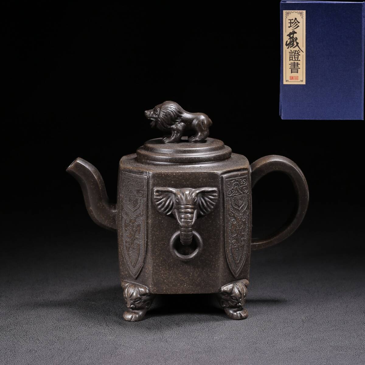 - 友人旧蔵 古原鉱古銅泥製 威震八方壺 顧景舟款 紫砂壺 茶壺 急須 煎茶道具 茶道具 時代物 古董品 骨董 旧家藏出 唐物 中国古玩 古美術品