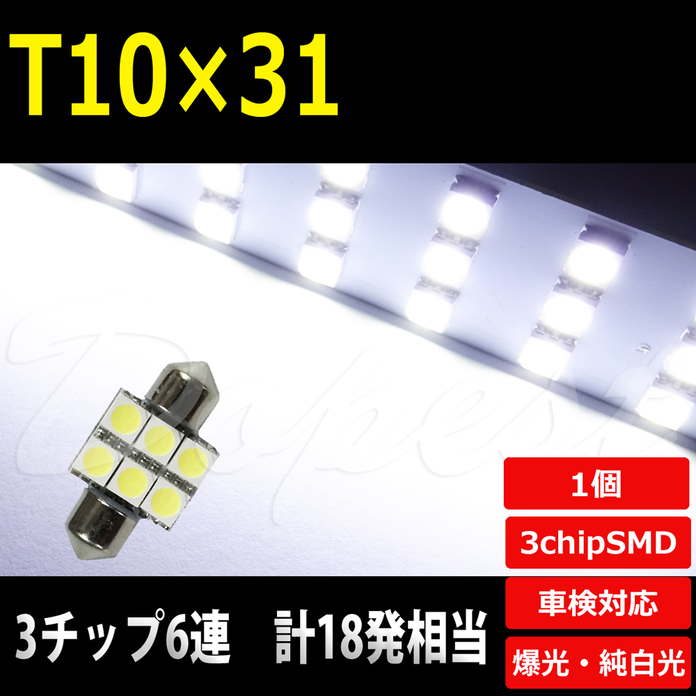 > LEDバルブ T10×31mm ルームランプ ラゲッジランプ 6500K純白 1個 車検対応 12V車専用 室内灯 6連