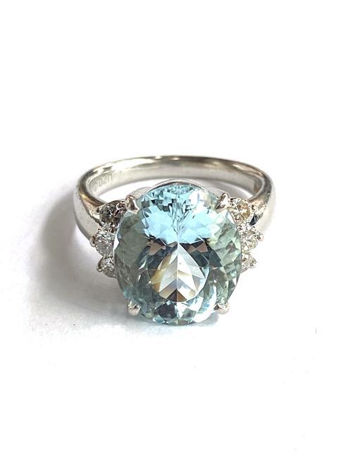 > 【即決/13号】 Pt900 AQ6.77 D0.40 アクアマリン ダイヤモンド リング 宝石 ジュエリー プラチナ 指輪 水色 色石 ブルー 10.2g