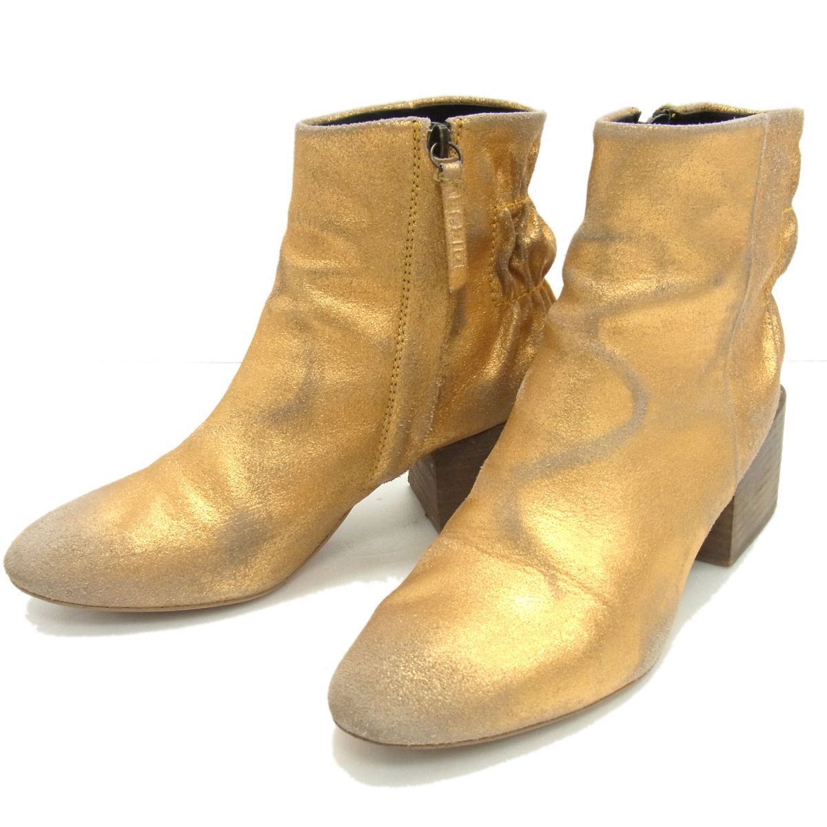 - 定価4万円☆DIESEL ディーゼル メタリックゴールド スエード ブーツ ギャザー加工 レディース チャンキーヒール