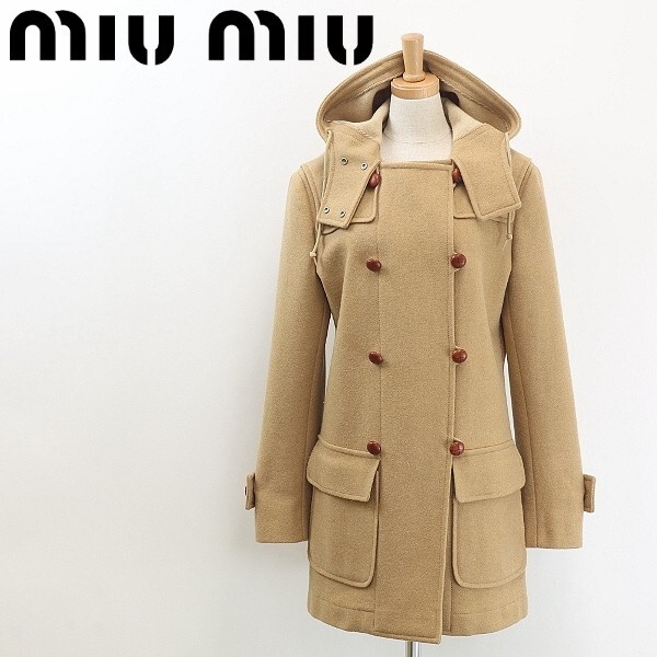- 【HA348】◆miumiu ミュウミュウ バスケットボタン ウール フーデッド コート ベージュ 42