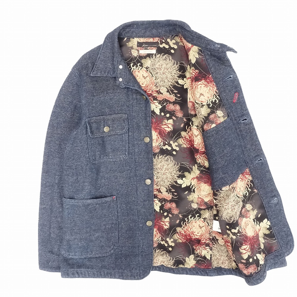 - 備中倉敷工房 ETERNAL エターナル デニム カバーオール ワーク ジャケット ブルゾン 和柄 サイズM インディゴ メンズ 【中古】