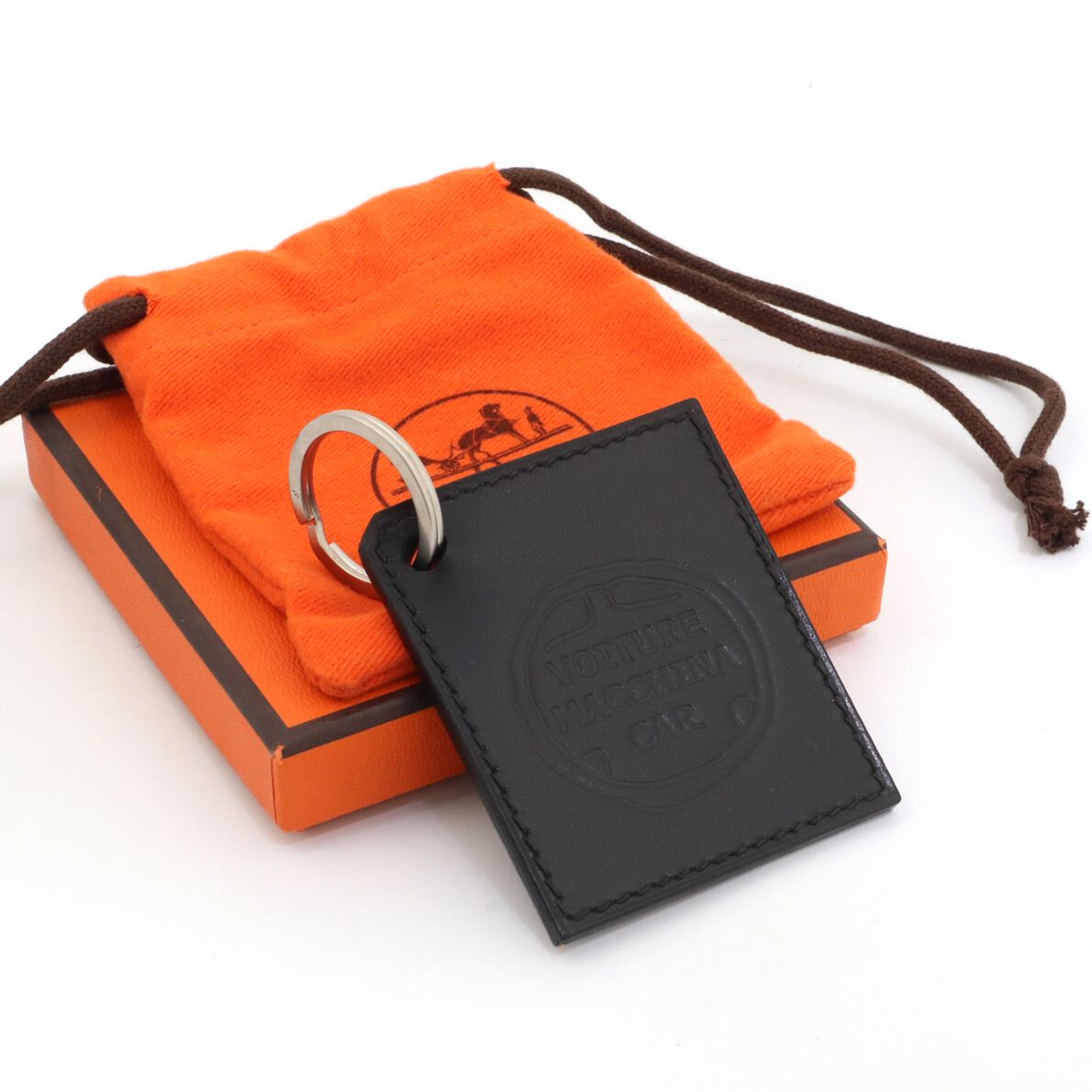 - エルメス HERMES キーリング キーホルダー VOITURE MACCHINA CAR ボックスカーフ ブラック チャーム レザー メンズ レディース
