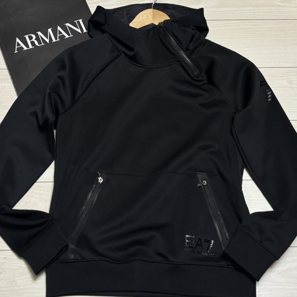 - EA7 エンポリオアルマーニ スウェット トレーニング パーカー トレーナー 変形ハーフジップ フーディー XSサイズ 黒 ブラック