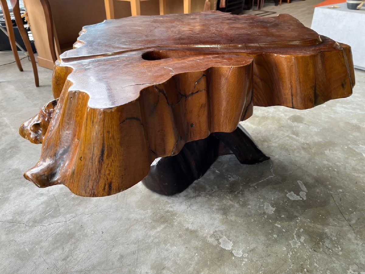 > ★アンティーク! 原木 木の根っこ 一枚板 ローテーブル 座卓 木製テーブル サイズ(約)幅93×奥行77×高45㎝ 天板厚(約)12㎝ 札幌発
