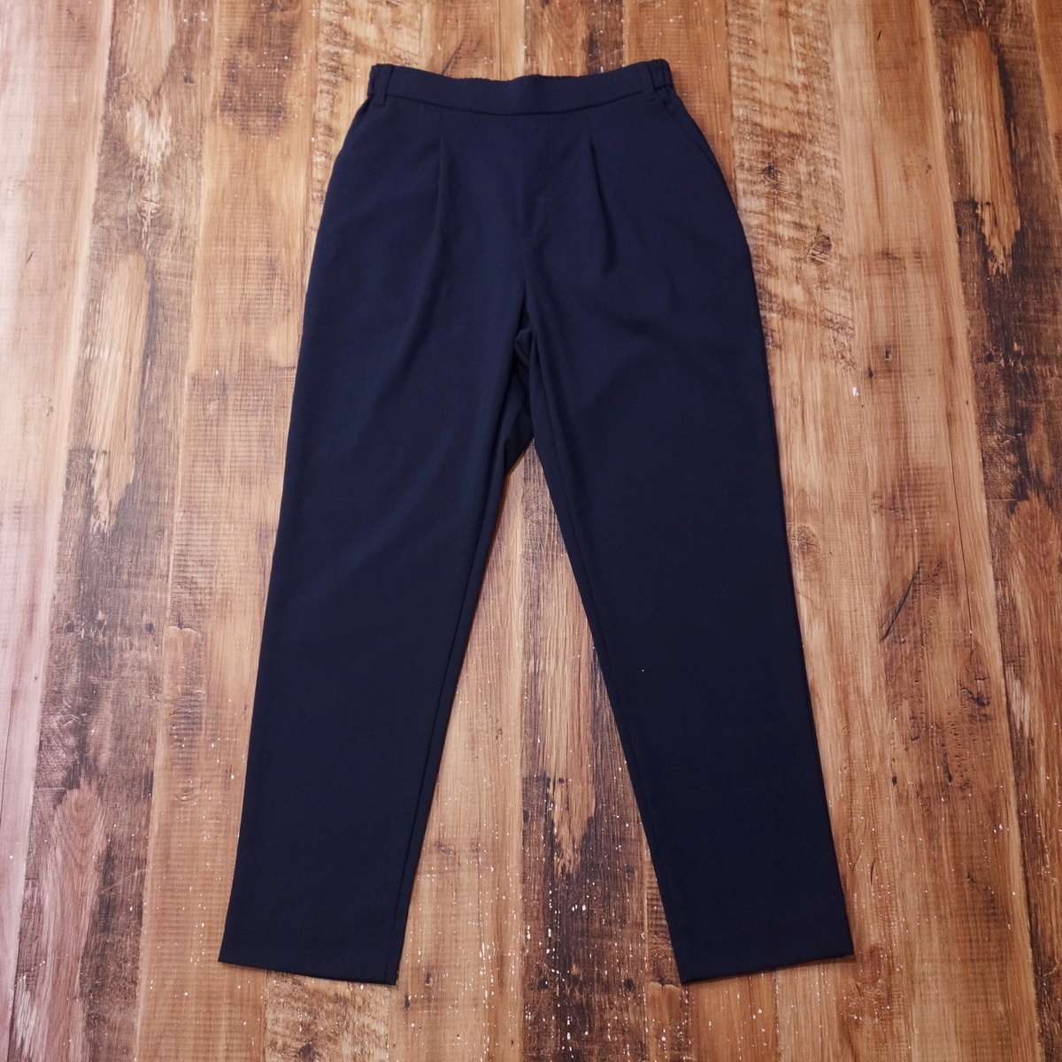 - トップバリュコレクション タックテーパードパンツ レディース オフィス ストレッチ ウエストゴム Mサイズ ネイビー QI14