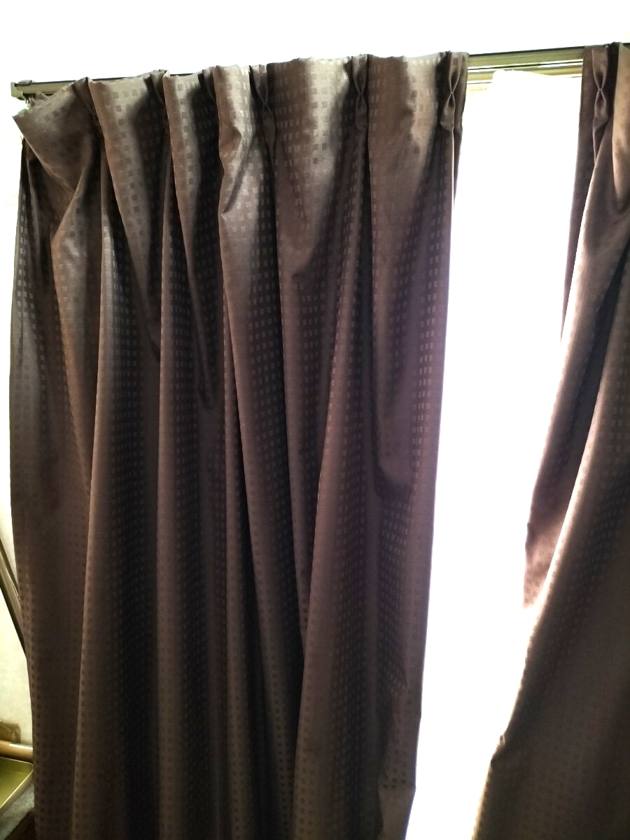- カーテン ブラウン(焦げ茶色) おそらく遮光 難ありタッセル2本有 シンコールリビング 中国製