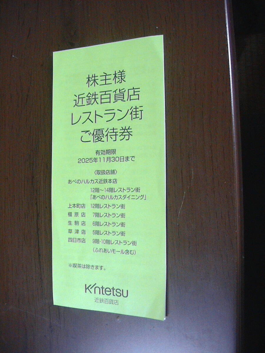 - 近鉄百貨店 レストラン街 優待券(5枚綴) 送料80円