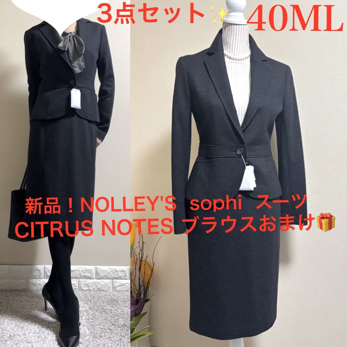 - 新品!3点組!ノーリーズ NOLLEYS sophi セットアップ スーツ シトラスノーツ ブラウスおまけ!40 ML ダークグレー 通勤 面接