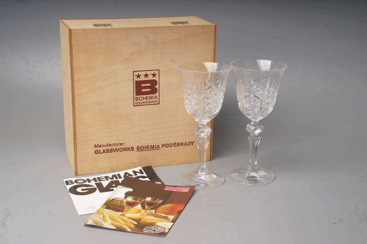 - BOHEMIA ボヘミア ハンドカット クリスタル ペアワイングラス 未使用品