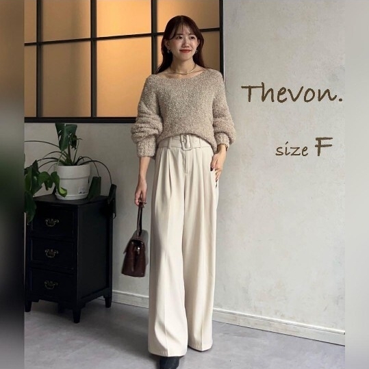 - Thevonセボン ベルト付きハイウエストタックパンツ