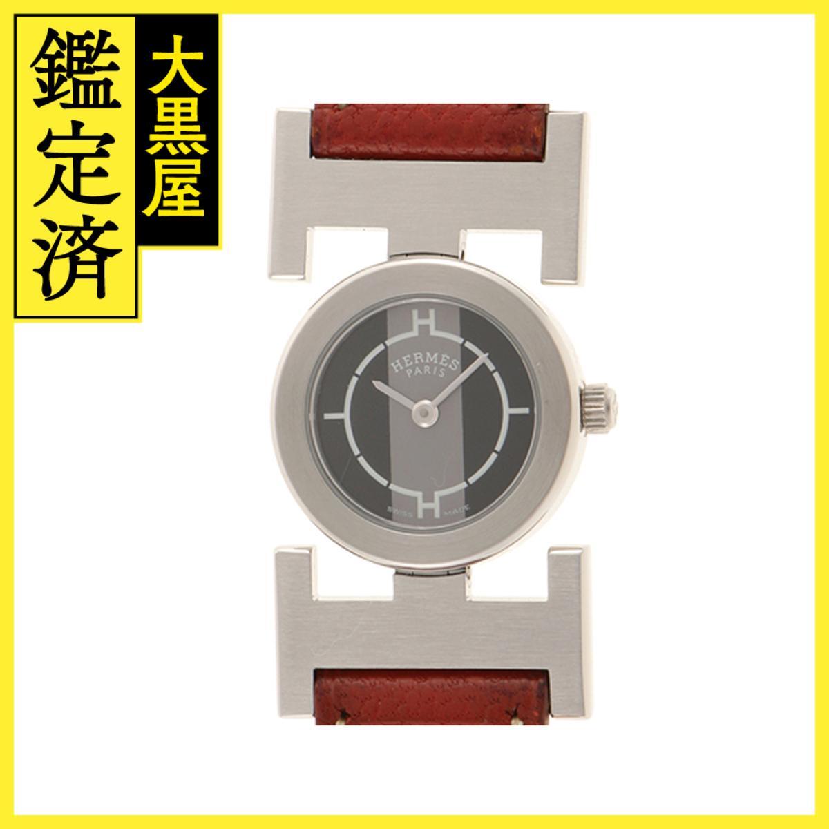 > Hermes エルメス パプリカ PA1.210 SS/カワ ブラック/グレー 女性用/Ladies watches