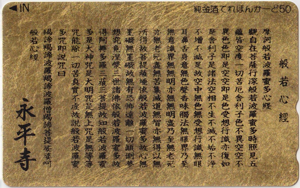- =般若心経= 「純金箔〜永平寺」販売テレカ #w