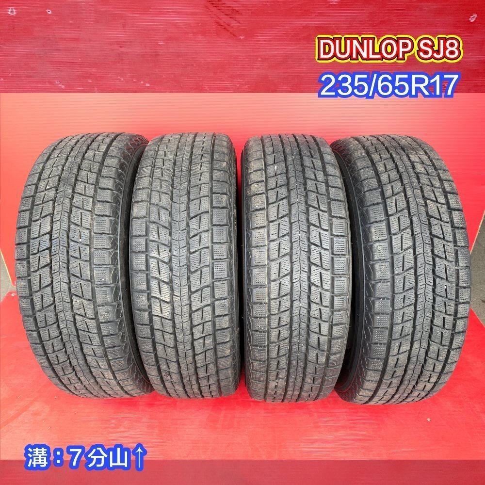 > 【送料無料】中古スタッドレスタイヤ 235/65R17 2018年製↑ 7分山↑ DUNLOP SJ8 4本SET【47140522】