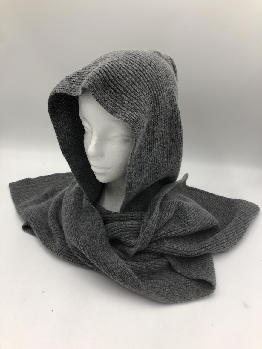 - 美品 COSY コージー イギリス製 リブ ニット フーデッド マフラー ストール ライトグレー ◆■◎ ☆ fib8 レディース