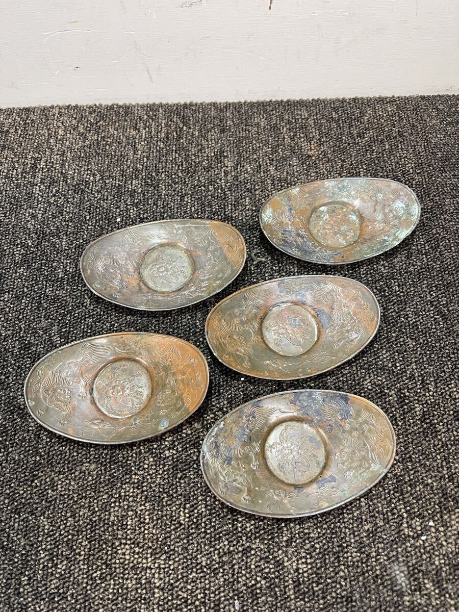 - 茶道具 扁舟式 茶托五枚 古美術 壽山作 麒麟文様煎茶器揃
