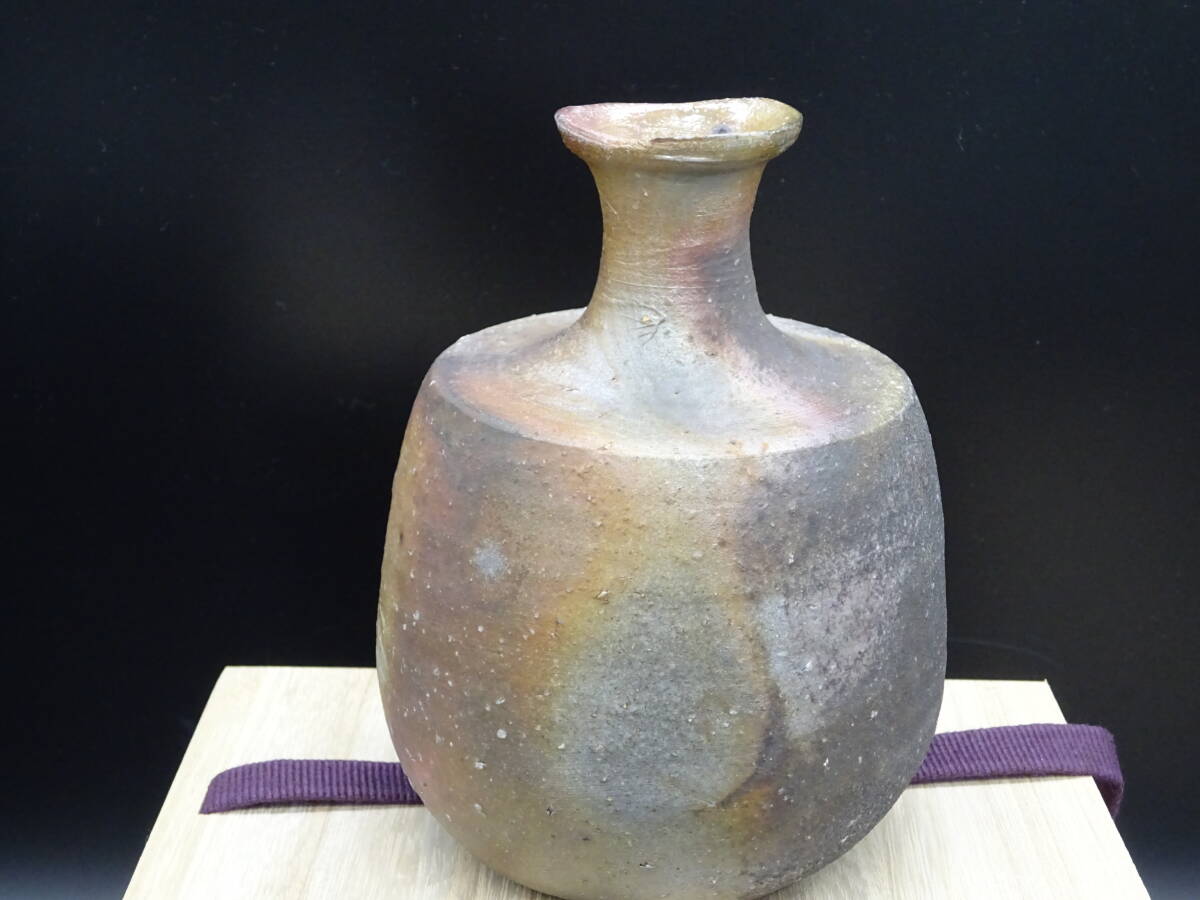 - 備前焼 人気実力作家 名工西川政美(師:人間国宝金重陶陽)伝統工芸士★備前窯変徳利 共箱(正彦識)、共布、陶歴付 茶道具