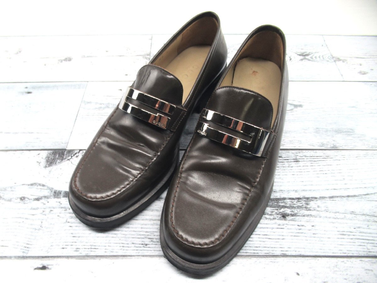 - ★【B送900円】2462 GUCCI グッチ レザーローファー 革靴 ブラウン シルバー金具 イタリア製 ビジネスシューズ 36 C