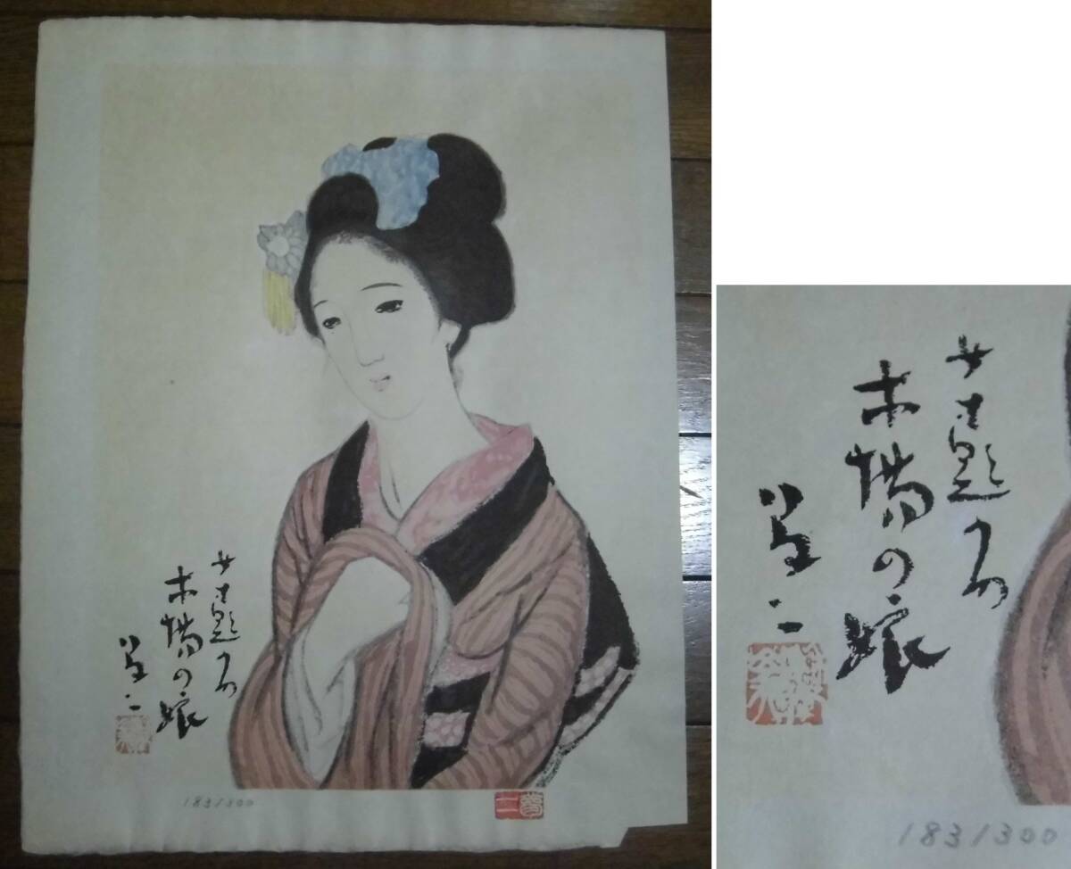 - 木版画 竹久夢二 木場の娘 限定300部内183 女十題 大正ロマン 美人画 浮世絵 壁掛け 飾り物 工芸品 レトロ 「真作」