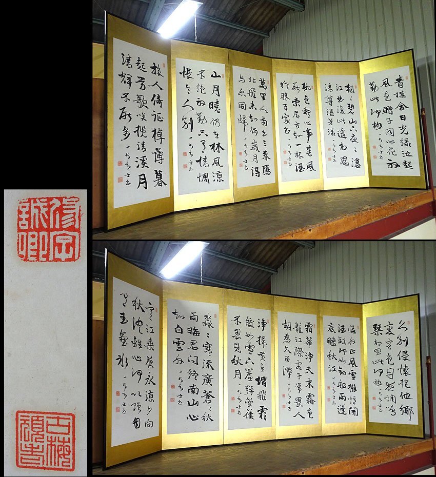 > 【模写】緑屋2■巌谷一六/誠卿 書家/政治家 六曲屏風 一対 行書 間仕切り 旧家初出し品 引取り歓迎 bni/9-117/i#佐川260x2個口