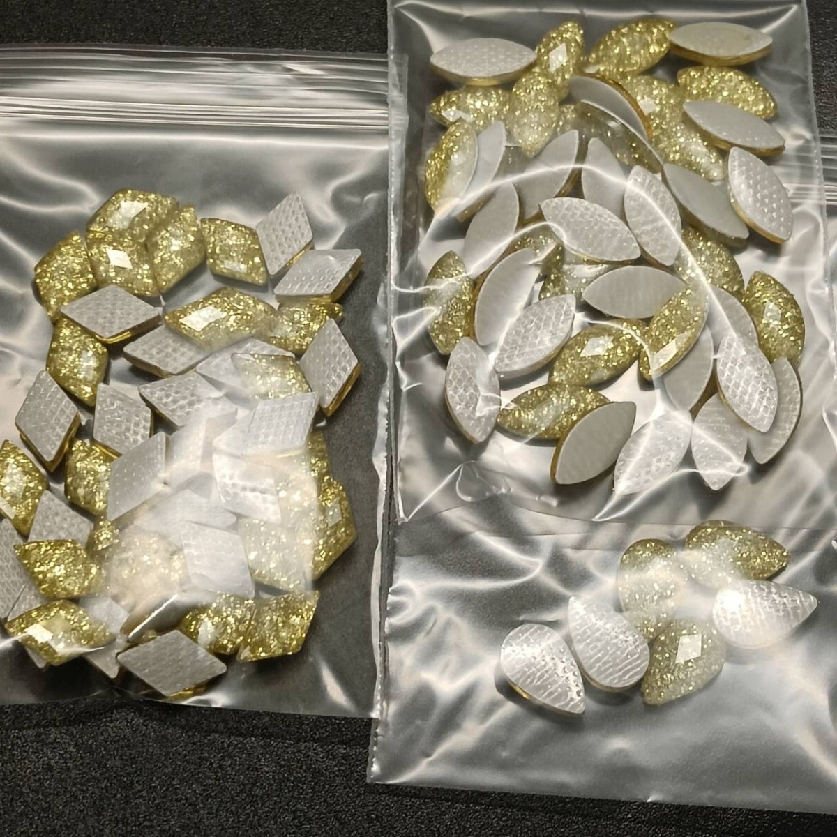 > L291☆未使用 大量 プラカボション パーツ オーバル リーフ ダイヤ型 約25g 13~15mm イエロー系 ラメ ヴィンテージ パーツ アクセ B-468
