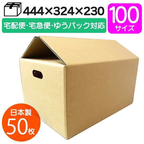 > 【日本製】50枚セット ダンボール 100サイズ (444×324×230mm) 段ボール 茶色 引越し 配送 梱包 フリマ オークション 出品 収納 無地