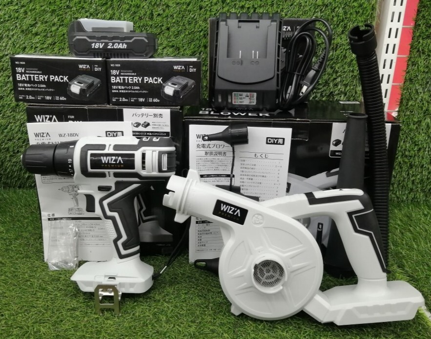- 未使用品 WIZ'A ウイザ 18V 充電式ブロワー WZ-18BL + 充電式ドリルドライバー WZ-18DV + バッテリー 2個 + 充電器 セット