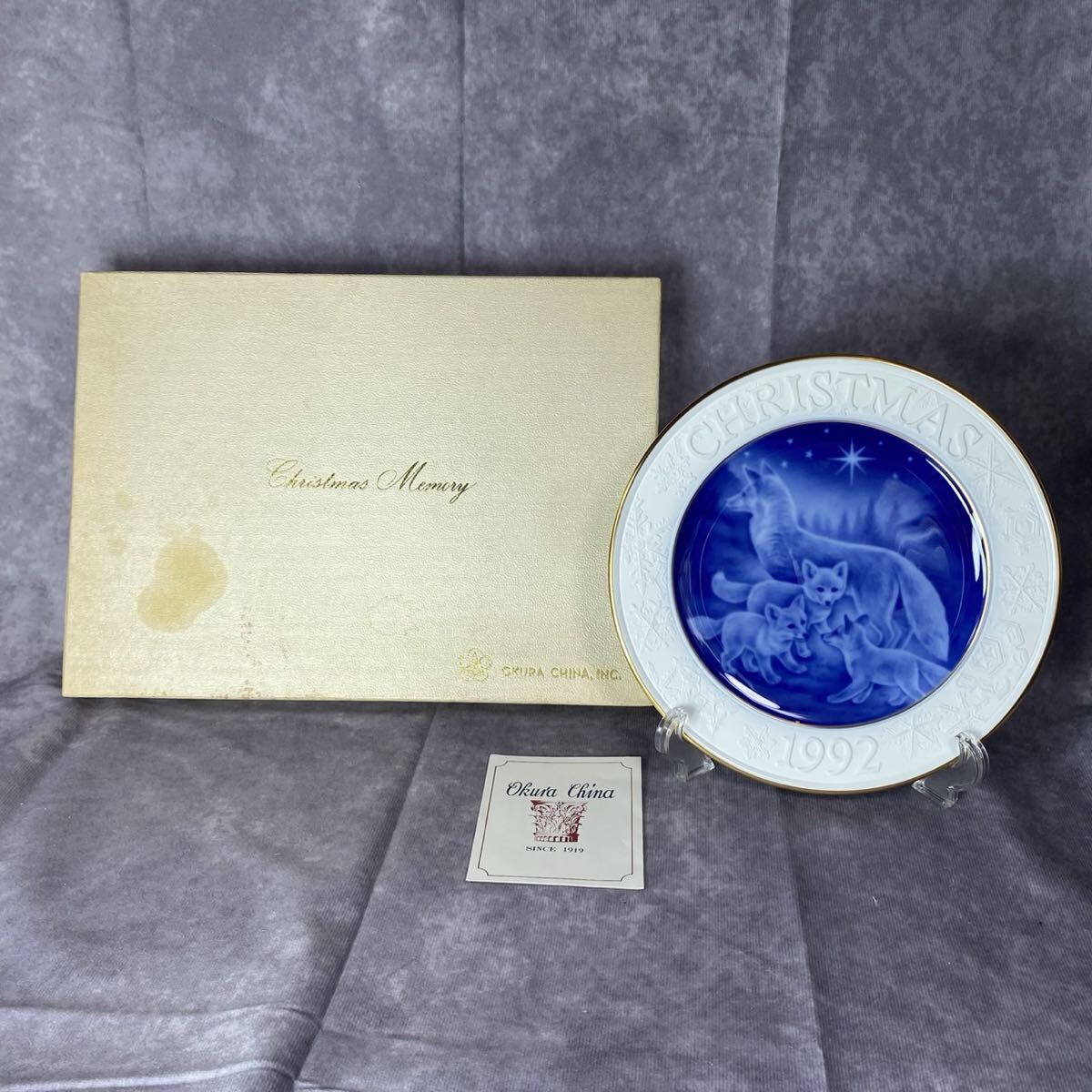 - 大倉陶園 FOX FAMILY クリスマスプレート イヤープレート 飾り皿 狐 染付 大倉 リミテッドエディション