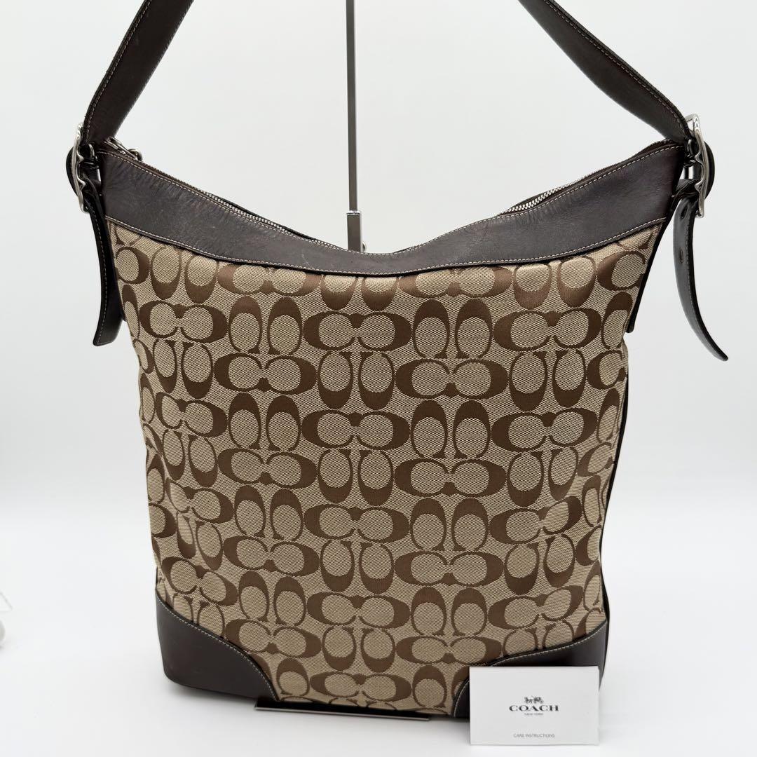 > 【良品】COACH コーチ シグネチャー ショルダーバッグ バケツ型 斜めがけ 総柄 ヴィンテージ キャンバス ブラウン レディース AG790908K