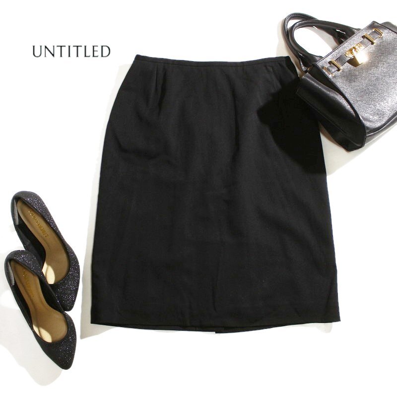 > 美品 アンタイトル UNTITLED 株) ワールド 秋 冬 スーツ ウール混合 タイトスカート 9号 M ブラック 黒 スカート オフィス 通勤 定番