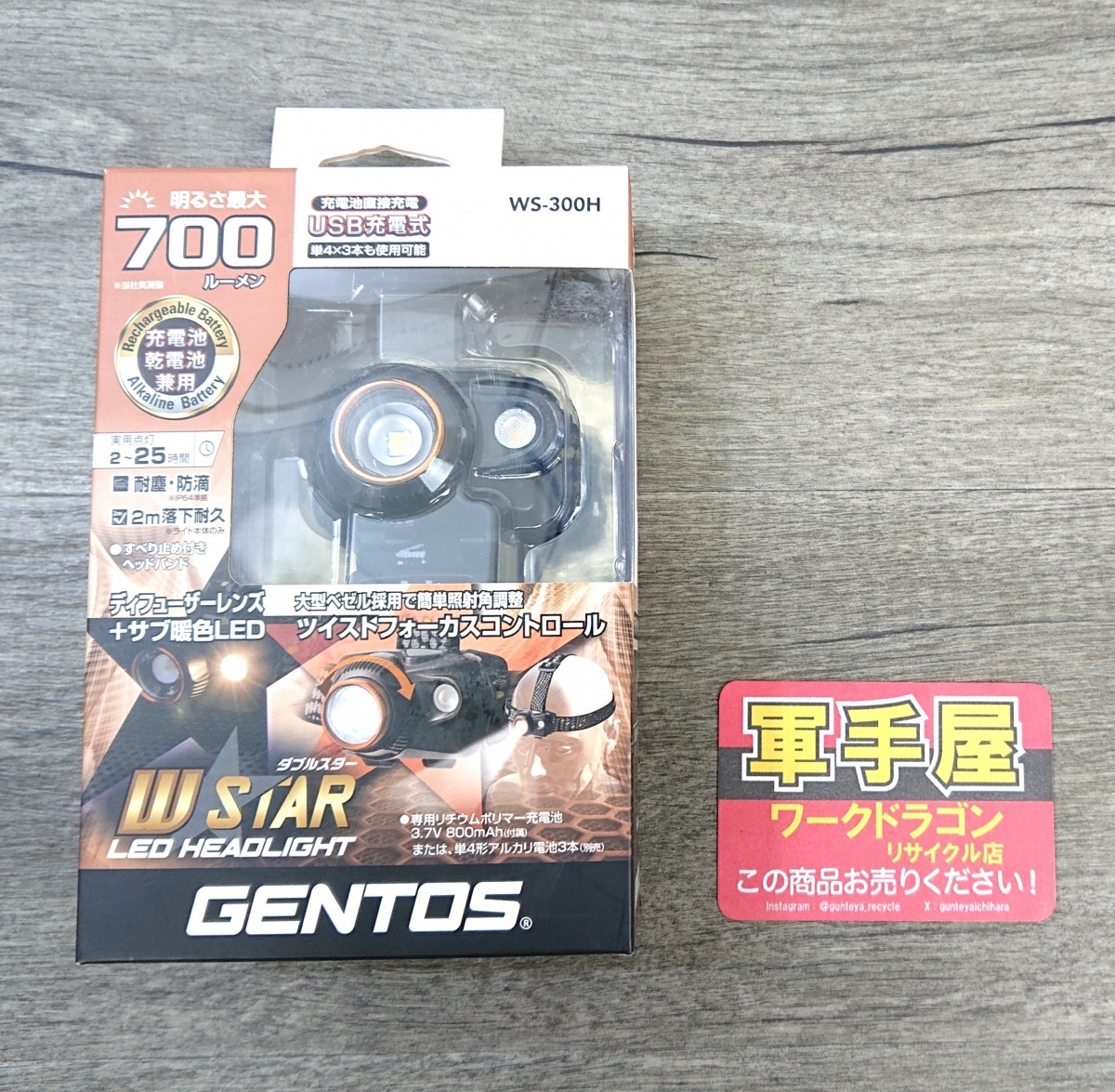 - 未使用品【 ジェントス / GENTOS 】 WS300H サブ暖色LEDハイブリット式ヘッドライト 700Lm ※箱傷みあり