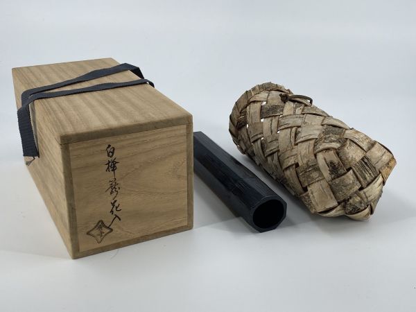 - 【雪華】 即中斎好 北海道 白樺 籠花入 秀峰 共箱 茶道具 【 表 千家 而妙斎 即中斎 正玄 利斎 小兵衛 稲尾 誠中斎 】