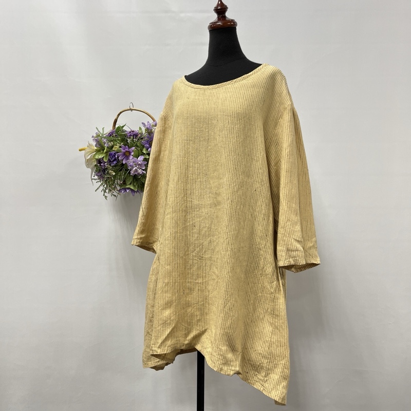 - Cheer/チアー/サイドポケット/ストライプリネン/Aラインシルエット/チュニック/プルオーバーブラウス/ふんわりシルエット/麻