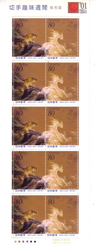 - 「切手趣味週間2000 龍虎図」の記念切手です