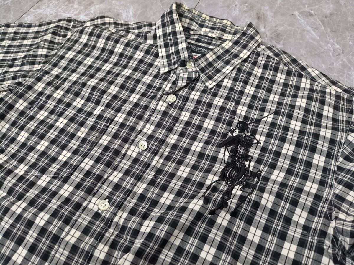 > 18.PUNK DRUNKERS ROLLING CRADLE クロスボーン ロゴ 半袖 タータンチェック柄 シャツ ローリングクレイドル パンクドランカーズ menL 106